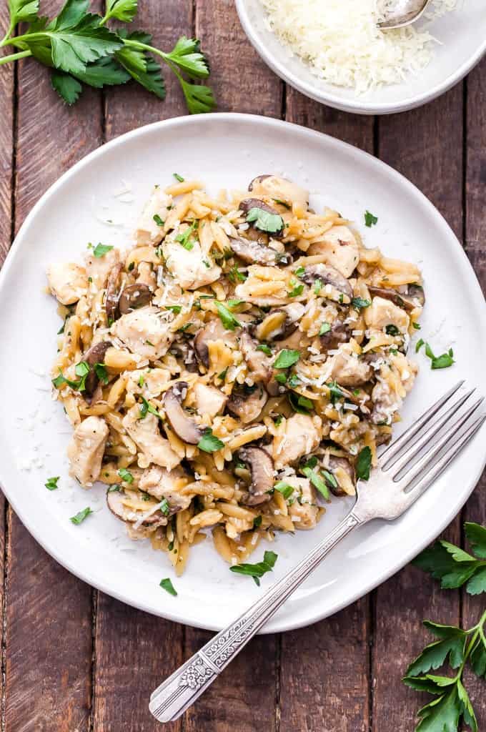 Parmesan Herb Chicken Mushroom And Orzo Skillet Spoonful Of Flavor